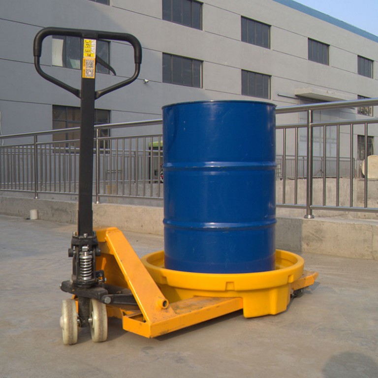 Die Palette ist mit insgesamt vier Löchern für die Staplerschienen ausgestattet. Dank der Auffangpalette kann das Fass mit einem Gabelstapler transportiert werden.