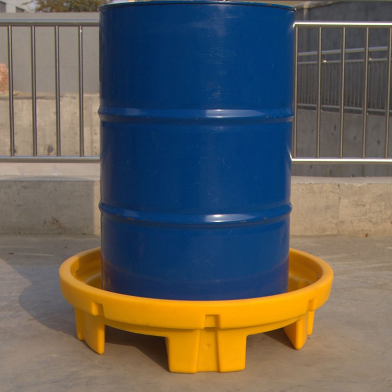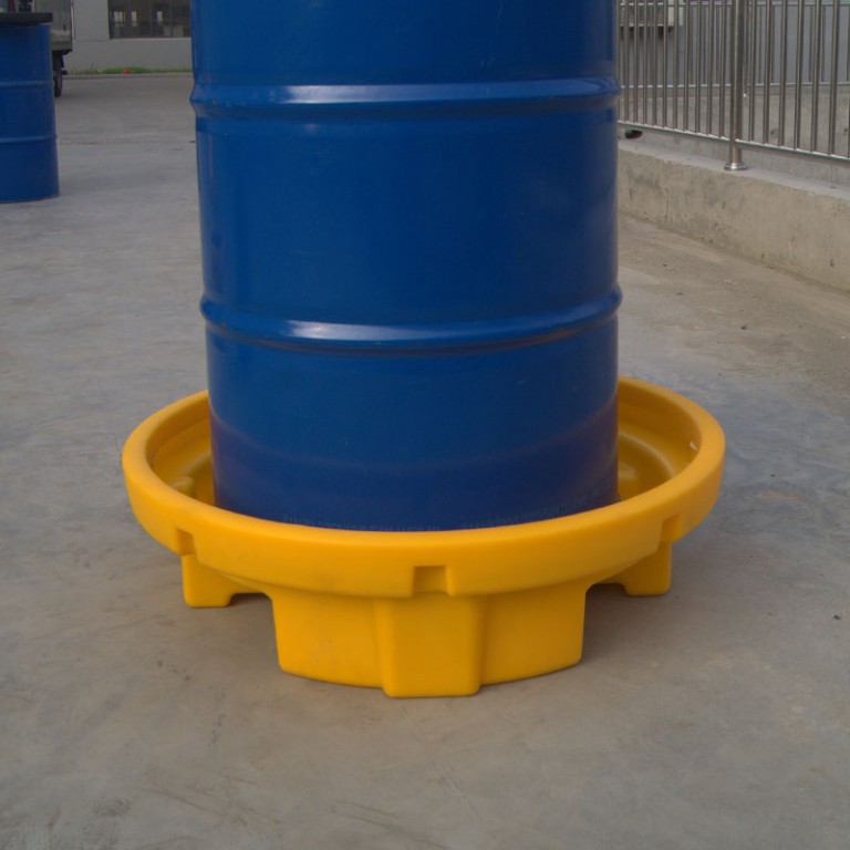 Haltepalette aus Kunststoff unter einem Fass.