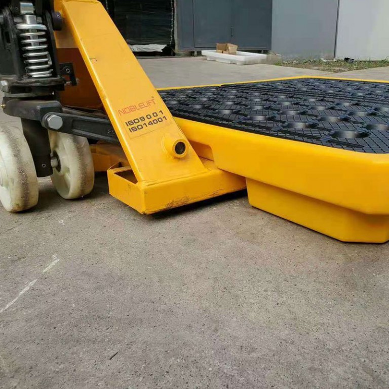 Die Palette kann mit einem Gabelstapler / Plattenwagen gehandhabt werden.