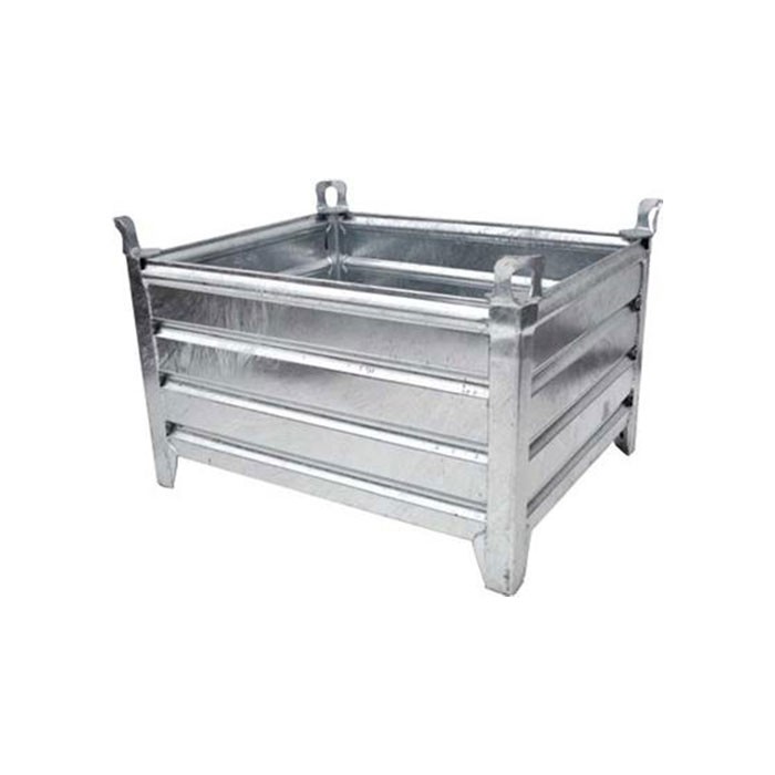 Konzipiert für den Transport und die Lagerung von schwerem Material. Die robuste Konstruktion ist langlebig und alltagstauglich. Feuerverzinkte Oberflächenbehandlung. Die Boxen sind stapelbar, bis zu 5 Boxen können übereinander gestapelt werden. Handhabung mit Kran oder Gabelstapler.