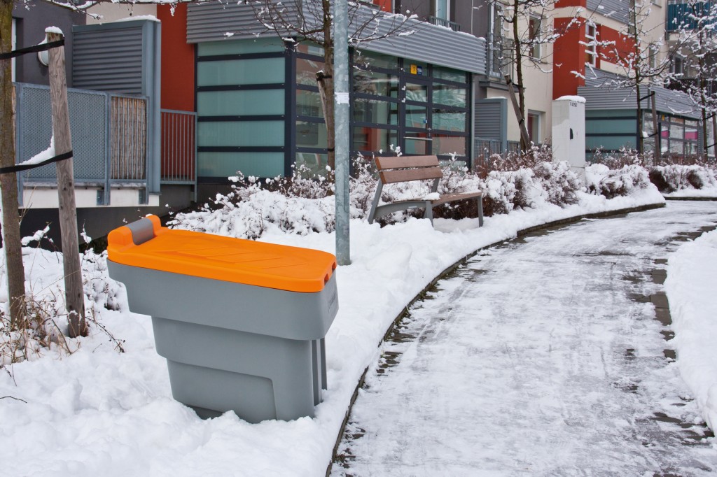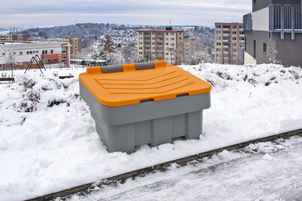 Zur Aufbewahrung von Streugut wie Kies, Sand, Salz, Ecogrit etc.